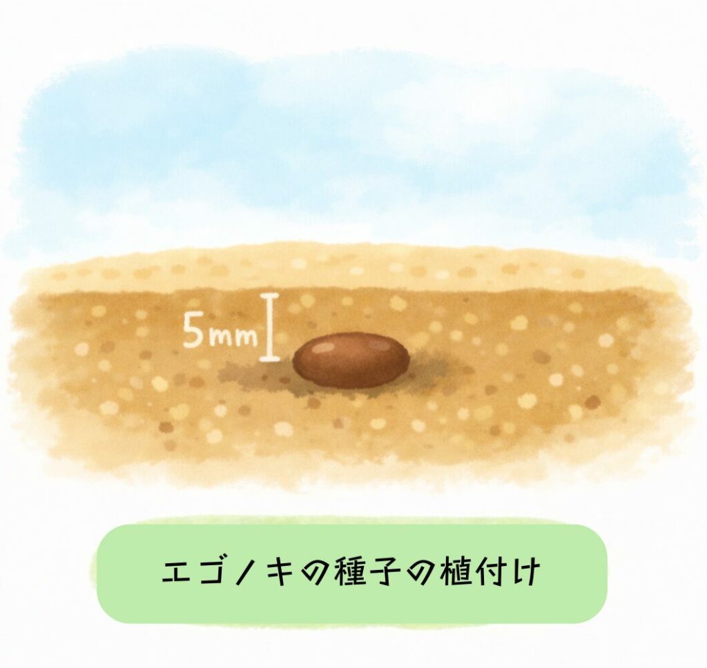 エゴノキ種子は薄く被せる程度に覆土します。