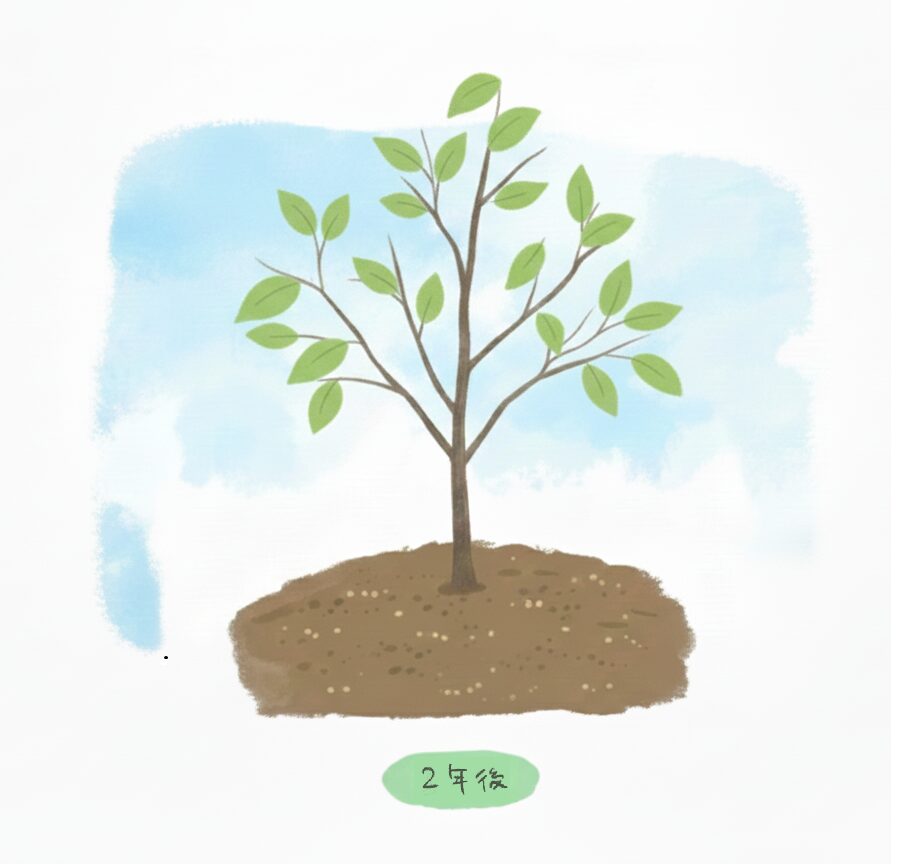 1年後くらいから幹が分かれて、枝が出て来ます。